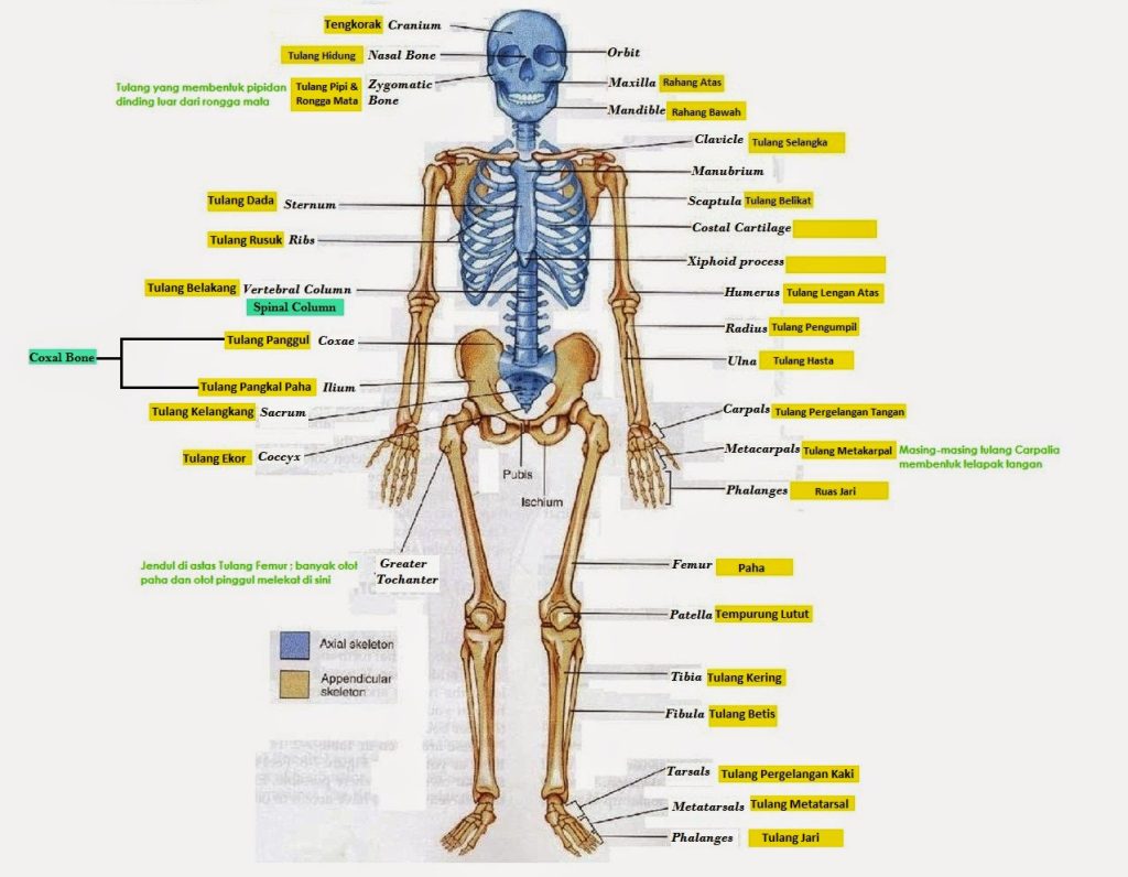 • Paha (Femur): Tulang terbesar dalam tubuh manusia yang berada di bagian atas tungkai. Paha berfungsi sebagai batang utama yang menghubungkan panggul dengan lutut.