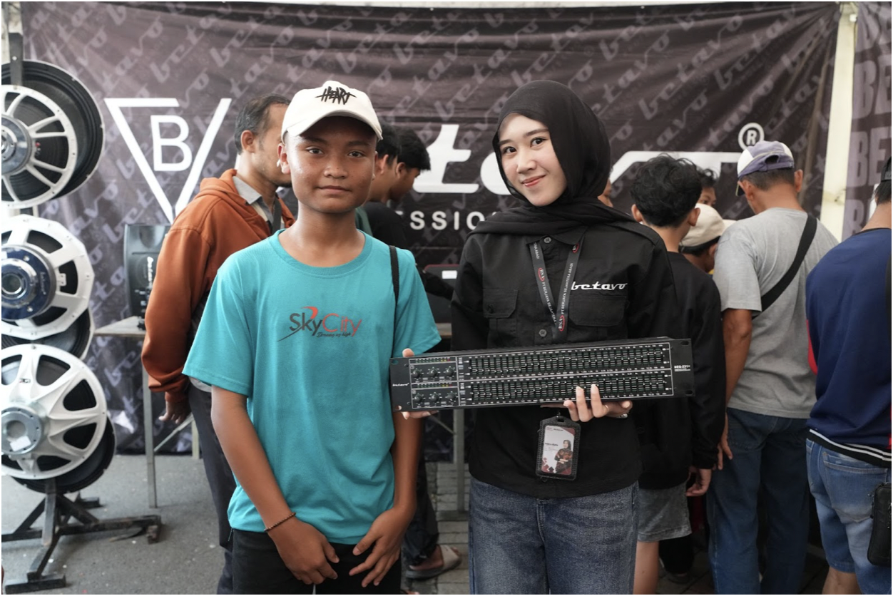 Selain demonstrasi produk, booth Betavo Audio juga dipadati oleh pengunjung dari berbagai daerah seperti Blitar, Magetan, hingga Pasuruan yang antusias memanfaatkan program promosi eksklusif selama pameran.