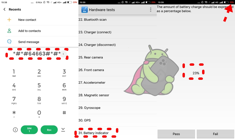 Kode ini digunakan untuk menguji kualitas baterai. Setelah mengetikkan kode ini, pengguna akan melihat hasil uji coba baterai, termasuk kemampuan baterai dalam menahan daya dan responsifitasnya.