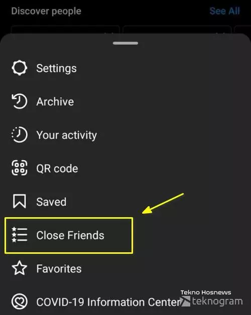 - Pilih opsi “Teman Dekat” dari menu yang muncul.