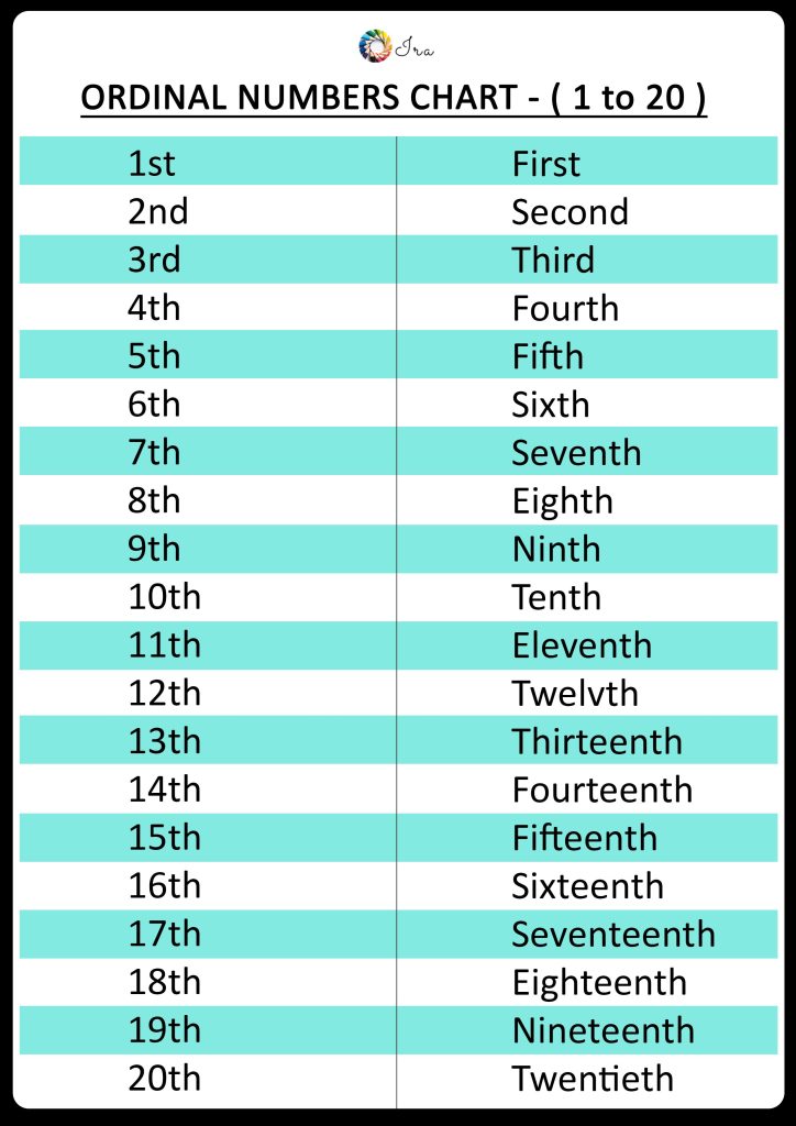 Berbeda dengan bilangan kardinal, bilangan ordinal digunakan untuk menunjukkan posisi atau urutan suatu objek dalam sebuah deret. Dalam bahasa Inggris, bilangan ordinal biasanya ditulis dengan akhiran “-st”, “-nd”, “-rd”, atau “-th”. Contohnya, “1st” (pertama), “2nd” (kedua), “3rd” (ketiga), dan “4th” (keempat). Bilangan ordinal sering digunakan dalam situasi yang melibatkan urutan, seperti lomba lari, peringkat akademik, atau tanggal.