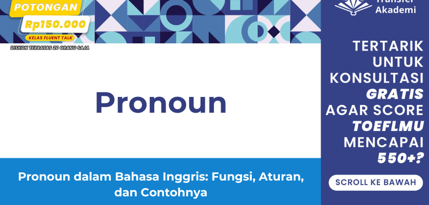 Pronoun adalah kata yang digunakan untuk menggantikan kata benda (noun) dalam sebuah kalimat. Tujuannya adalah untuk menghindari pengulangan yang tidak perlu dan menjaga kejelasan serta kelancaran dalam berbicara atau menulis. Misalnya, dalam kalimat “Rina pergi ke pasar. Dia membeli buah-buahan,” kata “dia” menggantikan “Rina”, sehingga kalimat terdengar lebih ringkas dan mudah dipahami.