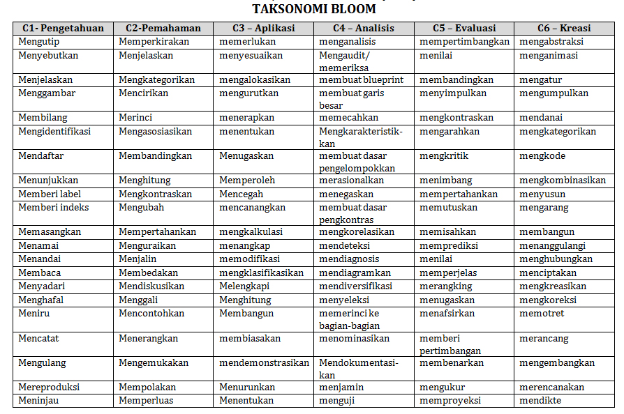 Contoh Penerapan Kata Kerja Operasional dalam Taksonomi Bloom