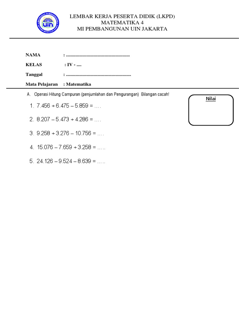 Contoh Soal Operasi Hitung Bilangan Cacah
