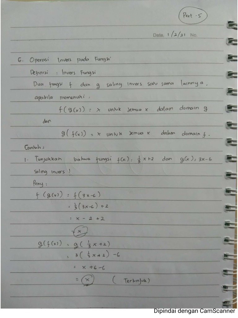 Fungsi invers adalah konsep matematika yang menggambarkan hubungan terbalik antara dua fungsi. Jika fungsi f(x) memetakan elemen dari himpunan A ke himpunan B, maka fungsi invers f⁻¹(x) akan memetakan elemen dari himpunan B kembali ke himpunan A. Secara sederhana, jika f(x) = y, maka f⁻¹(y) = x.