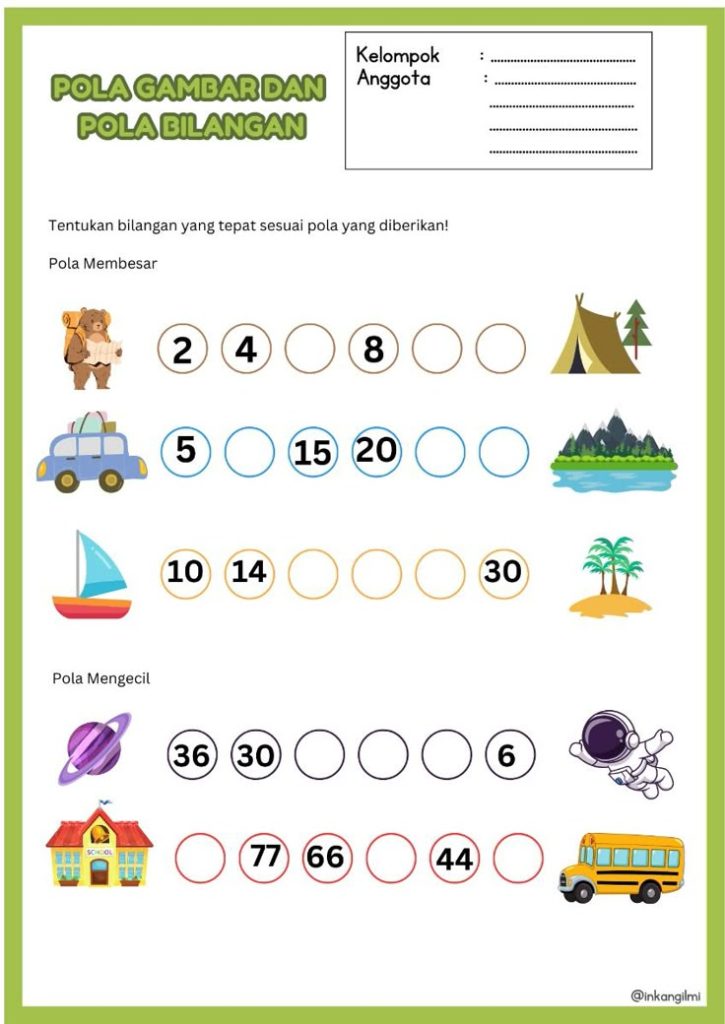 Pola bilangan merujuk pada susunan bilangan yang memiliki keteraturan tertentu. Keteraturan ini bisa berupa selisih tetap antar bilangan (beda), perbandingan tetap (rasio), atau pola lain yang lebih kompleks. Pola bilangan sering kali digunakan untuk memprediksi bilangan berikutnya dalam suatu barisan, sehingga memudahkan proses perhitungan dan analisis.