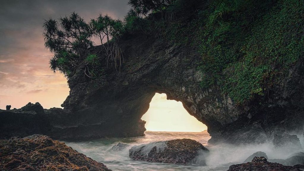 Keunikan dari pantai ini terletak pada batu karang raksasa yang berlubang di tengahnya. Batu tersebut membentuk sebuah lengkungan yang sangat menarik, memberikan latar belakang foto yang sempurna. Selain itu, pemandangan matahari terbenam yang spektakuler juga menjadi salah satu alasan mengapa banyak orang ingin berkunjung ke sini. Saat matahari mulai tenggelam, langit akan berubah warna menjadi oranye dan merah, menciptakan pemandangan yang begitu indah.