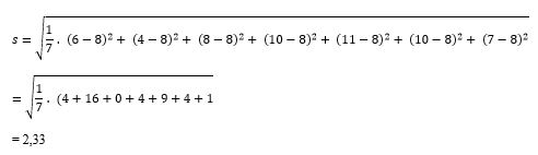 Akar kuadrat dari hasil bagi yang diperoleh adalah nilai simpangan baku.