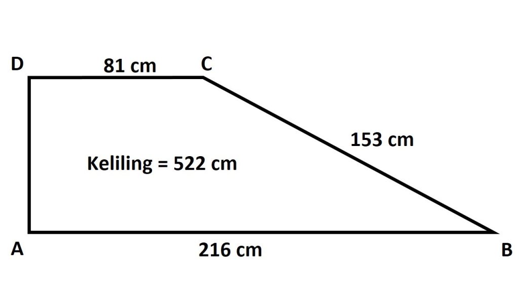 Keliling trapesium siku-siku dapat dihitung dengan menjumlahkan semua sisi yang ada: