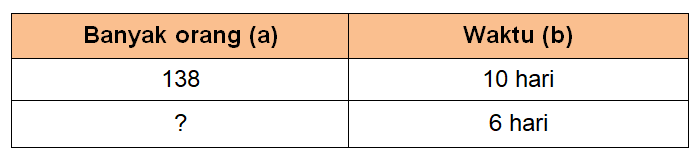 – $ a $ dan $ b $ adalah dua besaran yang berbanding senilai.
